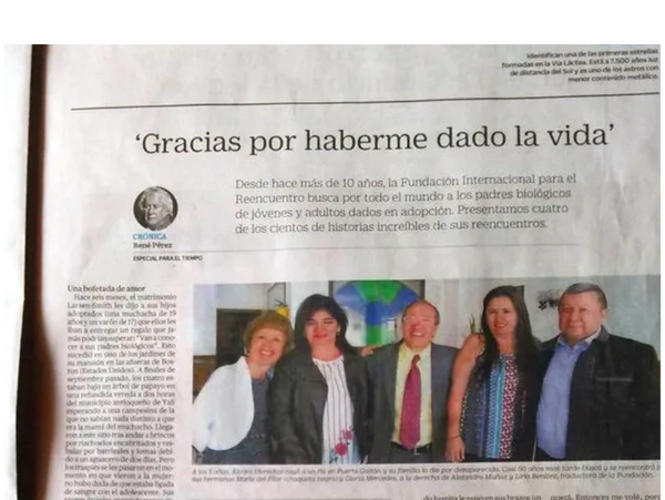 Periodistas de manera voluntaria y desinteresada se han unido a la Fundación Internacional Para El Reencuentro, a lo largo y ancho del territorio colombiano, para hacer eco por medios electrónicos y han multiplicado nuestros llamados de auxilio en la búsqueda y el rastreo de personas o datos que estamos buscando para realizar un Reencuentro; como el que estamos celebrando en esta foto, donde Ana Milena Rodriguez y yo (acurrucados), festejamos el encuentro de una madre con su hija desaparecida por más de 50 años.